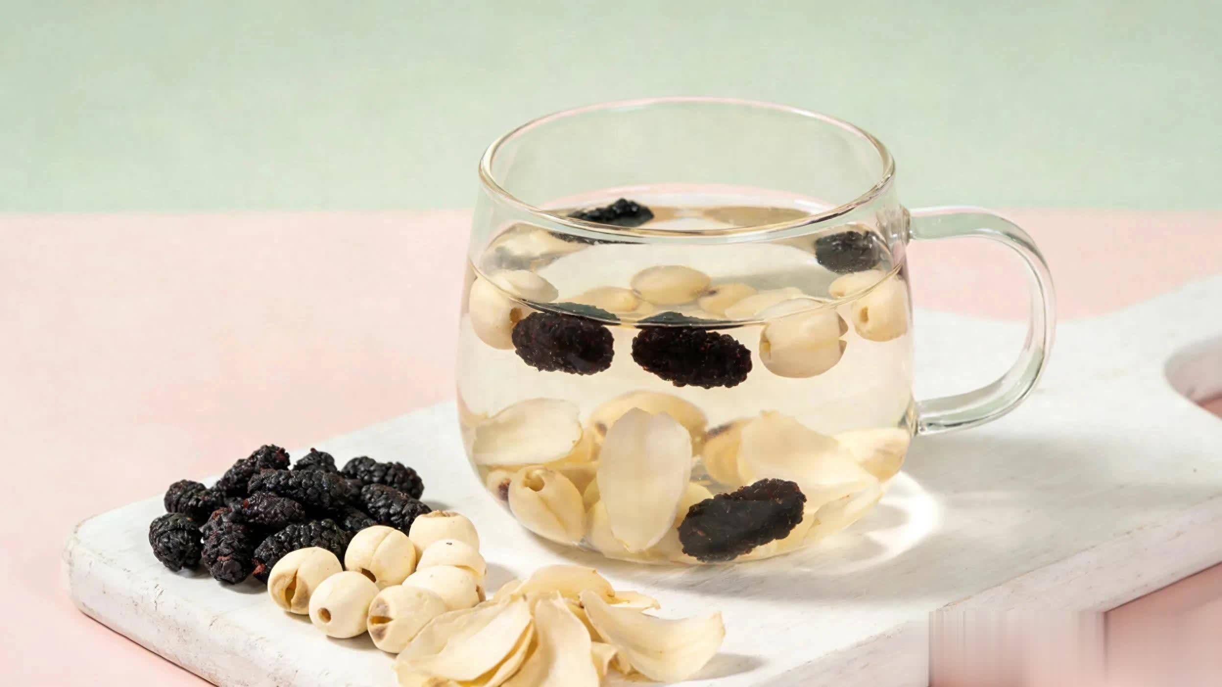 第一款:桑葚莲子百合水(安神补肝,眠稳肝舒)