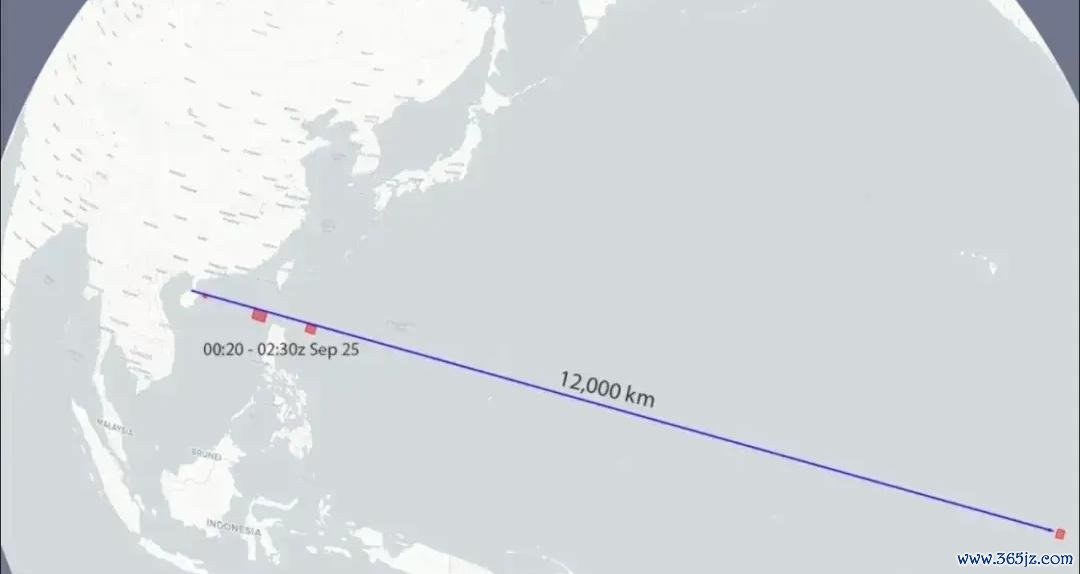 这枚导弹从我国某个基地辐射后,穿越东部地区,最终在南太平洋某地准确掷中指标,这也让咱们大致推断出此次辐射的导弹的射程约为1.2万公里。