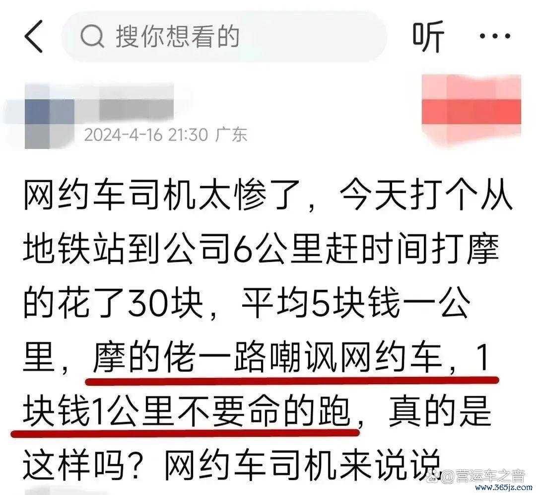 殊不知,打摩的6公里花了他足足30块钱,而摩的师父一皆都在讪笑网约车:1块钱一公里,还不要命的跑!