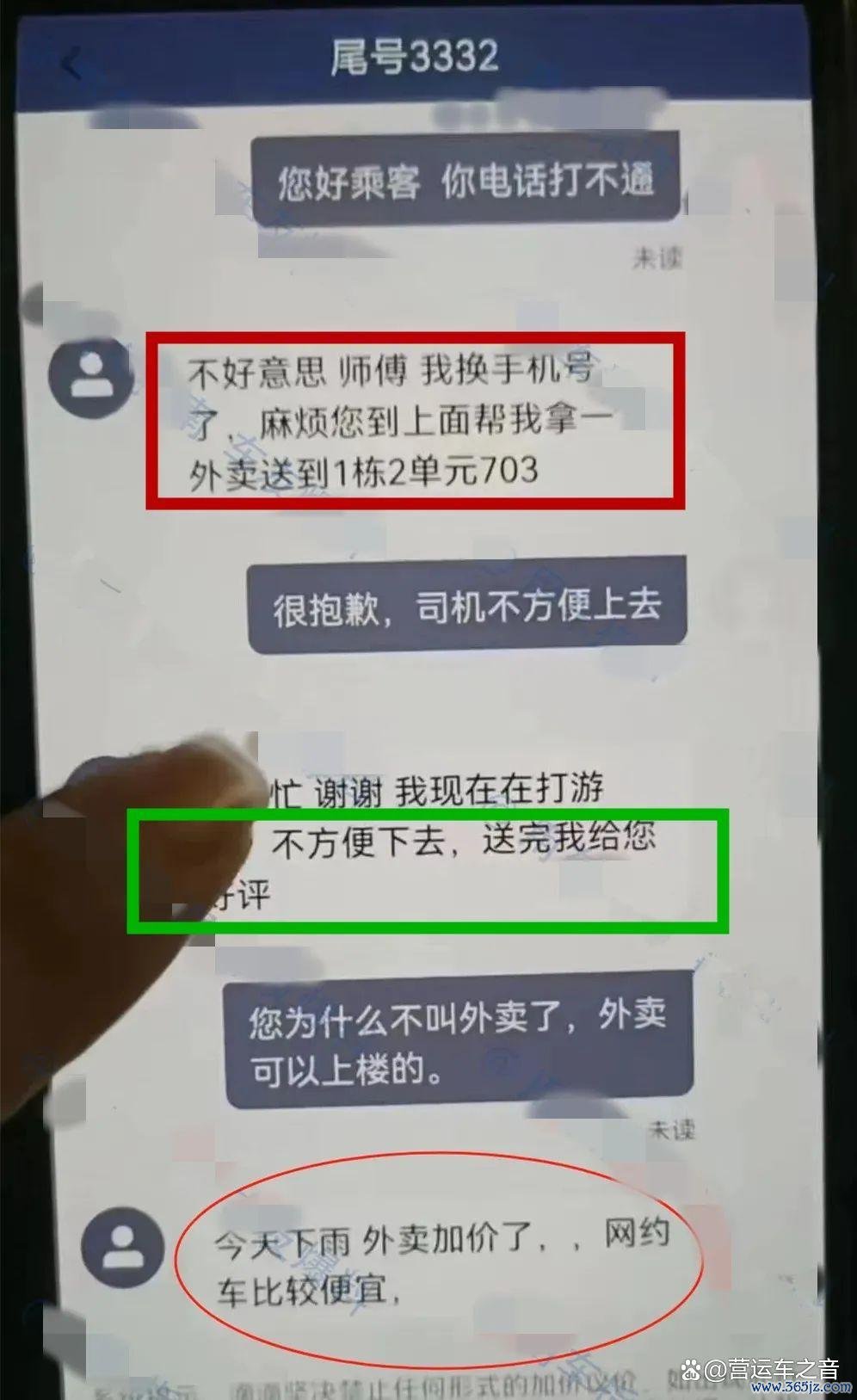司机接单后,在与乘客的疏通中,对方竟苛刻了让司机帮她送外卖的条目,暗示司机送完之后,我方会给其奉上好评!