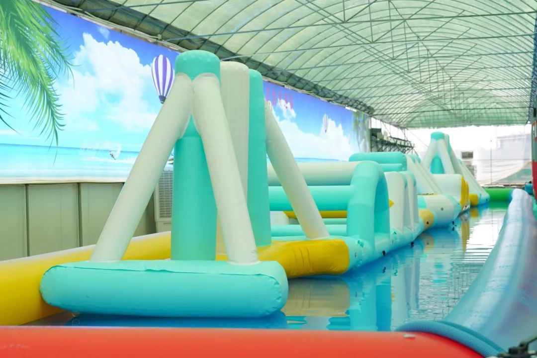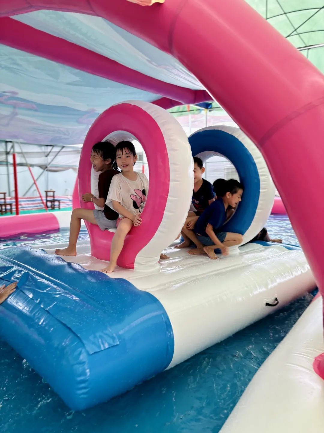 小南现场看到,在近3000正常米的运营面积中,有长达50多米的水上儿童闯关游戏、长达40米的独角兽亲子闯关、长20多米的福鹿滑梯,以及长15米的懦夫滑梯,还有约略打出烟圈的空气大炮,饱胀小一又友们玩上泰半天也不重叠。