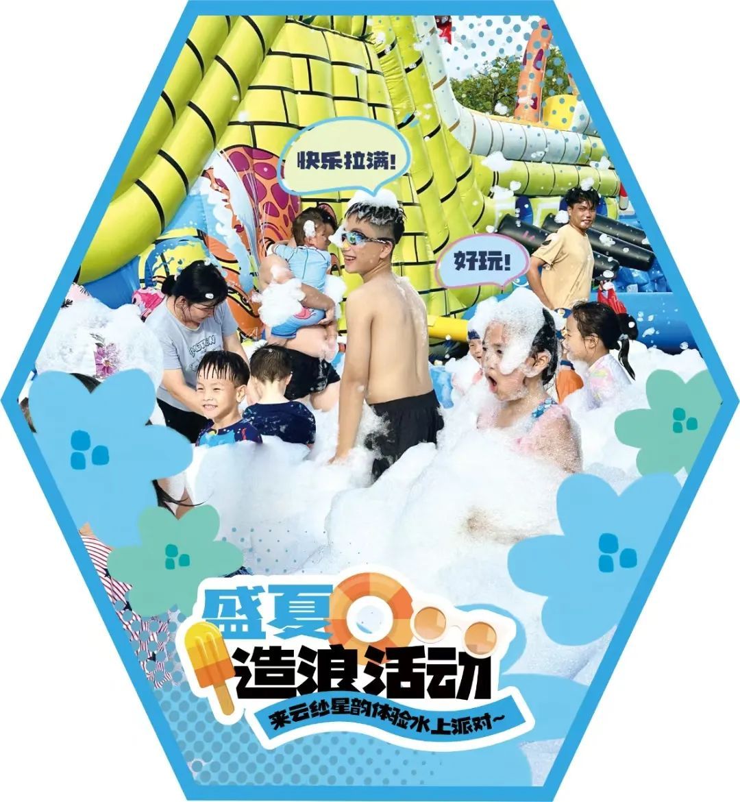 云纱星韵水星韵游乐土内有8个大型的充气玩水活动和全天候降温喷淋建造,让孩子们在最晒的下昼时光也享受超chill的寒冷兴奋。